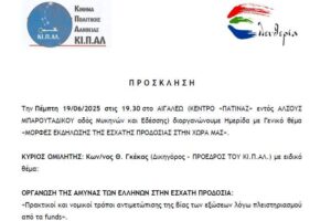 Στις 08.03.2025 πραγματοποιήθηκε έκτακτη ενημέρωση των φίλων του ΚΙ.Π.ΑΛ. και ΑΜΚΕ ΕΛΕΥΘΕΡΙΑ για τις τρέχουσες...